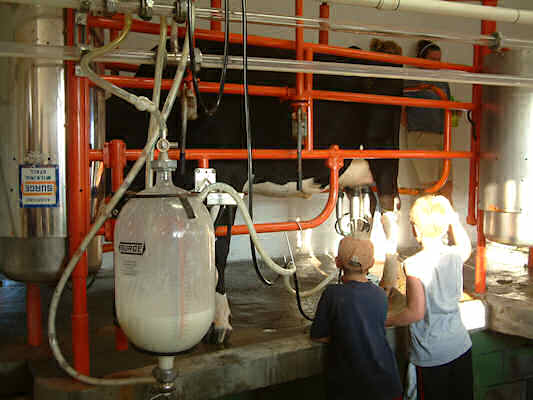Piscataquis Valley Fair is proud to present our new milking parlor built in 2011. It sports an inside walkway for better viewing of the daily milking demonstrations (6pm Thursday, Friday and Saturday) and an extensive display of Maine milk bottles and antique milking equipment. |