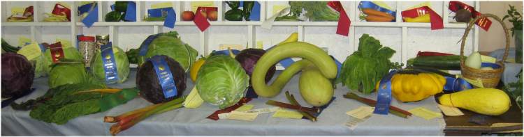 Beans, Snap & Pole (10), Onions (3), Braided tops for hanging , Beans, Dry & Shell (1 cup), Parsnips (3), Beets (1), Peas (10 pods), Broccoli (1), Peppers (3), Brussell Sprouts (10), Potatoes (3), Cabbage (1), Pumpkin (1), Carrots (3), Radishes (6), Cauliflower (1), Squash Summer (1), Corn, Squash, Winter (1), Cucumbers (3), Sweet Corn (3), Eggplant (1), Tomatoes (3), Gourds (3), Cherry Tomatoes (1 pt), Greens & Herbs (bunch), Turnip (1), Lettuce (1 head), Zucchini Kohlrabi, Other.