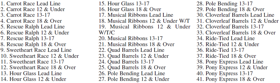 Weight classes are 30-40 lbs, 41-50 lbs., and 51-60 lbs. Open to all kids in their proper weight class. Kids placing first, second and third in their weight class during the regular pulls are eligible for the pull-off on Sunday. Ribbons will be given for the regular pulls. Trophies to be awarded for Sundays pull-off. All decisions of the judges will be considered impartial and final. SUNDAY’S PULL-OFF is for WINNERS from the first three days and Sunday’s 10 a.m. pull. NO new participants at pull-off.