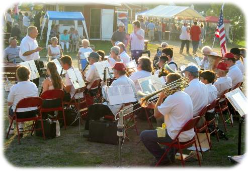 Thursday, August 26, 6:15 PM in front of Exhibition Hall Contact: Kathy Jones 564-8976; Arnold Poland 564-2760 ![]() Pull up a chair, grab a soda and let The Community Concert Band entertain you. These local, talented musicians will play marches, show tunes and band classics for your enjoyment. |